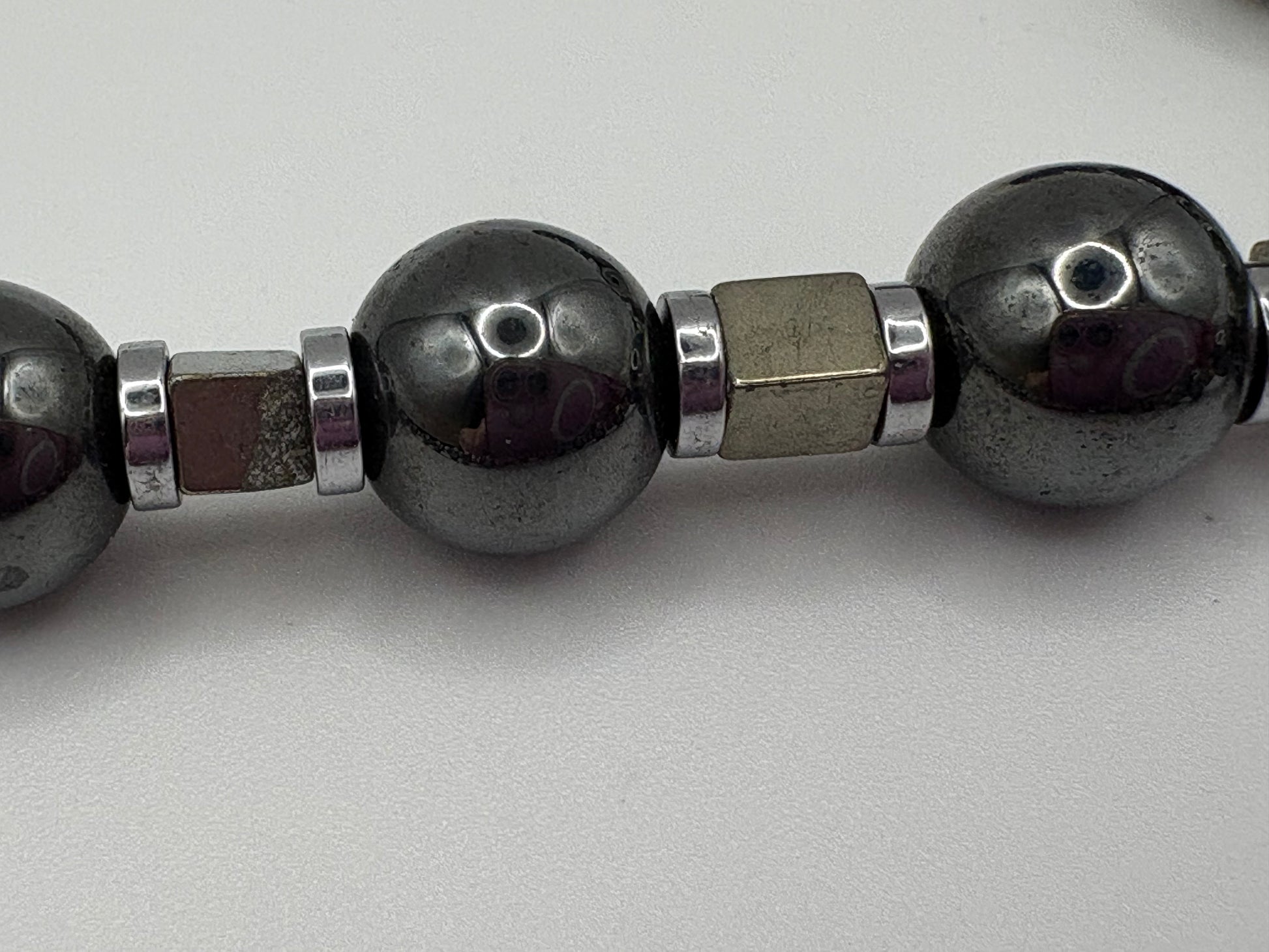 8mm hematite stones 3mm pyrite squares, 3mm pyrite spacers